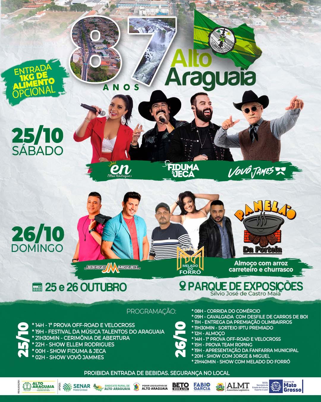 “Tudo foi pensado e preparado para nossa gente, oferecendo lazer, diversão e valorizando a cultura de Alto Araguaia. Convidamos a todos para participar dessa grande festa”, destacou o prefeito Jacson Niedermeier.