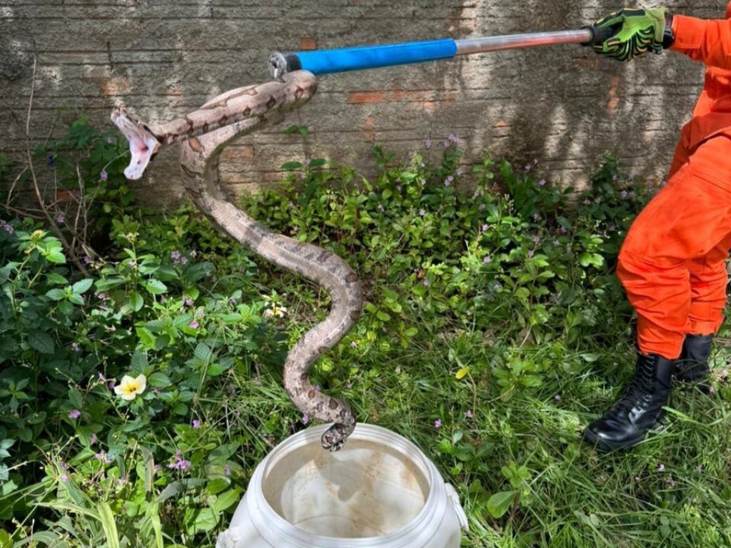 O Corpo de Bombeiros Militar de Mato Grosso (CBMMT) resgatou na manhã de domingo (25.1) uma cobra jiboia que estava no lote de uma residência em Água Boa (639 km de Cuiabá).