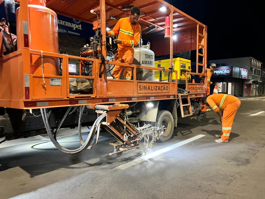 A coordenadora explica que os serviços envolvem a reposição completa da sinalização horizontal, incluindo a pintura de faixas de pedestres, linhas de retenção, legendas, demarcação de lombadas e áreas de estacionamento. Os trabalhos estão sendo realizados preferencialmente no período noturno, para evitar grandes impactos no tráfego e mesmo com o período chuvoso terá continuidade.