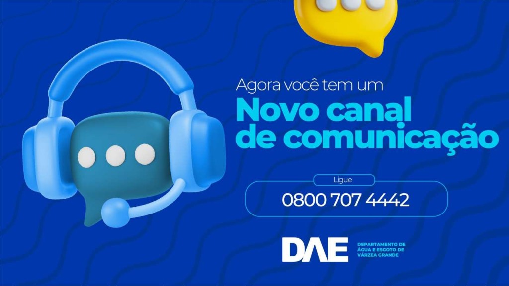O Departamento de Água e Esgoto de Várzea Grande (DAE-VG) ampliou o horário de atendimento do call center, agora o 0800 707 4442 funcionará também aos finais de semana. A mudança faz parte de uma série de ações para modernizar o atendimento e dar respostas mais rápidas à população. O novo horário será de segunda a sexta-feira, das 7h às 18h, aos sábados, das 7h às 18h e aos domingos, das 8h às 12h.