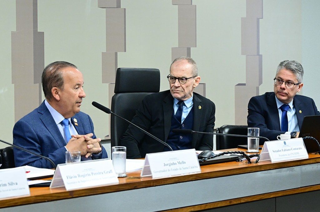 O presidente da CPI, senador Fabiano Contarato (PT-ES), reconheceu o trabalho da gestão estadual em Santa Catarina, destacando a valorização dos profissionais da força de segurança.
