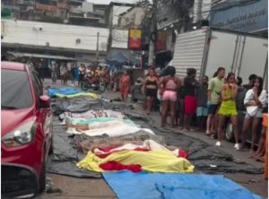Segundo informações divulgadas pela imprensa local, os cinquenta e quatro corpos resgatados foram levados para a Praça São Lucas, no Complexo da Penha, entre a noite de ontem e a manhã de hoje, um dia após a operação mais letal da história do Rio de Janeiro, que apreendeu mais de 100 fuzis e grande quantidade de drogas.