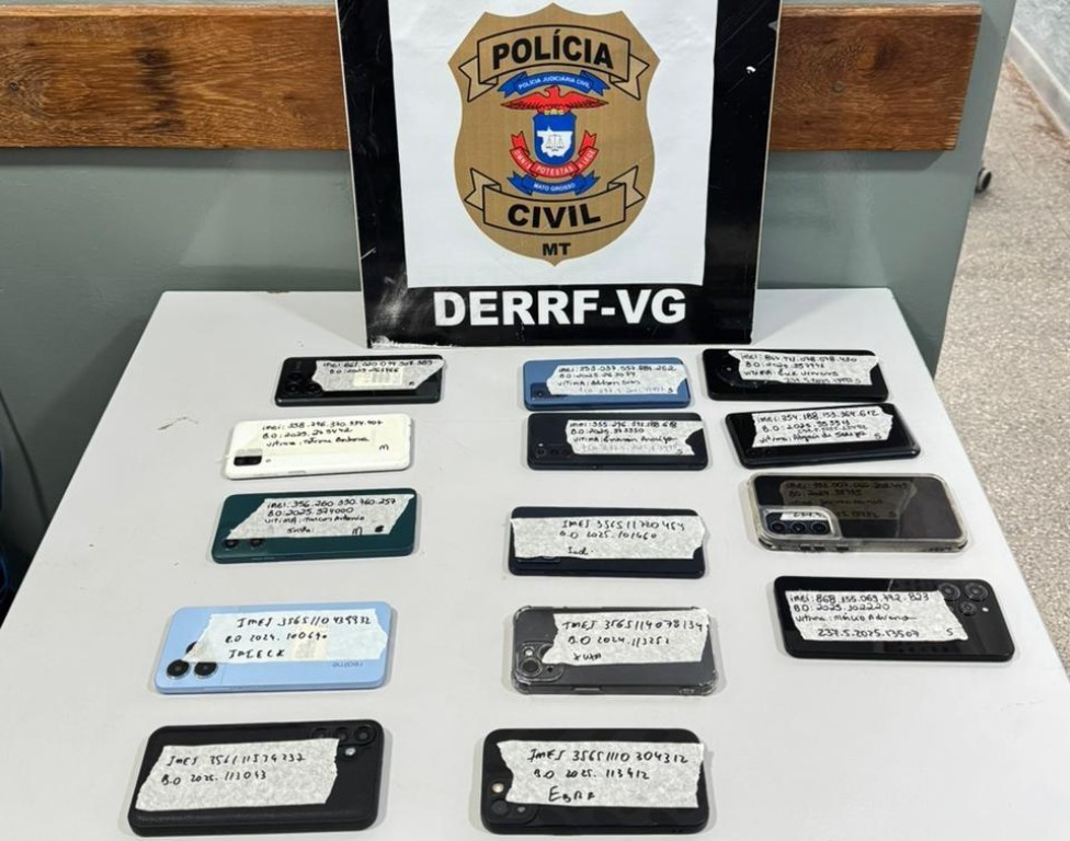Os aparelhos recuperados estão vinculados a investigações de roubos e furtos ocorridos em Várzea Grande, apuradas pela Delegacia Especializada de Roubos e Furtos (Derf) de Várzea Grande.