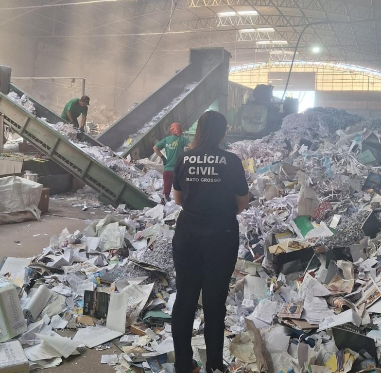 Aproximadamente 1,1 tonelada de documentos da Polícia Civil de Mato Grosso que perderam a validade foram descartadas na manhã de quinta-feira (23.10), em uma empresa de reciclagem, em Várzea Grande.