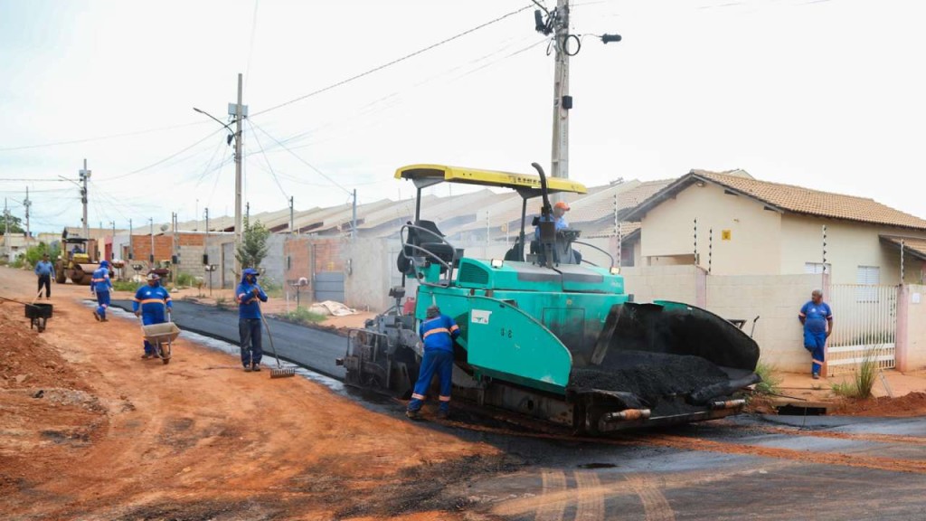 Após a conclusão dos serviços de terraplanagem e drenagem, as equipes iniciaram a aplicação do pavimento em mais três vias: Rua Lourenço de Brito, Rua Isaías e Rua 22