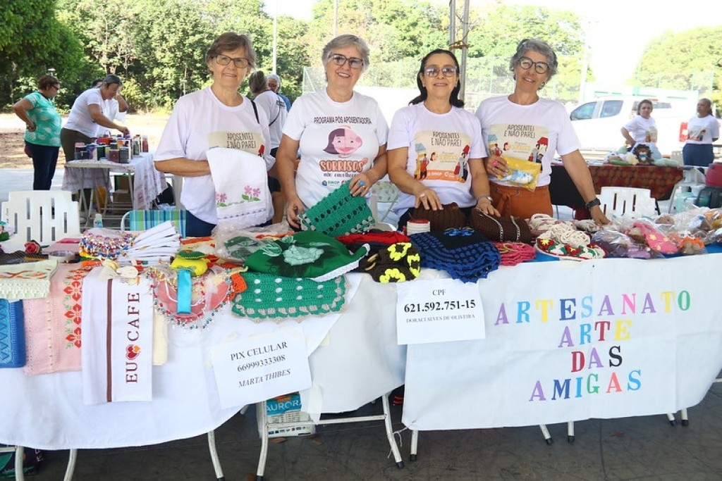Sábado (09) foi o dia dos servidores aposentados do município, ligados ao Instituto de Previdência de Sinop (Previ Sinop), mostrarem suas novas habilidades na terceira edição da feira “Aposentei e não Parei”. A ação foi realizada pela manhã, na Praça da Bíblia e teve a exposição de confeitarias e panificações caseiras, como bolos, pães, tortas, e, produtos de artesanatos como tapetes, panos de prato, trilhos para mesa, todos feitos de crochê e/ou bordados.