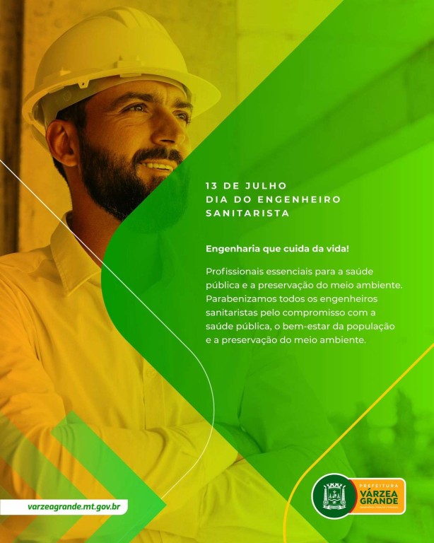 Neste 13 de julho, Dia do Engenheiro Sanitarista, a Secretaria Municipal de Viação, Obras e Urbanismo de Várzea Grande destaca o papel dos profissionais que atuam na área técnica com responsabilidade e compromisso, contribuindo com projetos e obras que impactam diretamente a qualidade de vida da população.